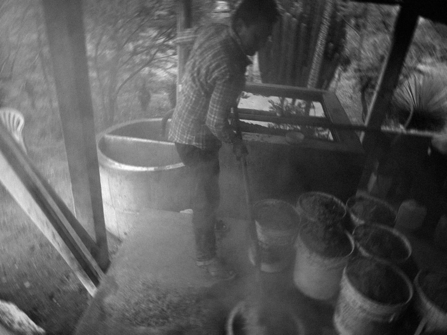 La fermentación es el siguiente paso en nuestro proceso artesanal. Utilizamos tinas de sabino, un elemento que agrega una dimensión especial a la fermentación natural del agave. Durante este proceso, los azúcares se transforman en alcohol, creando una base rica y auténtica para nuestra pócima.